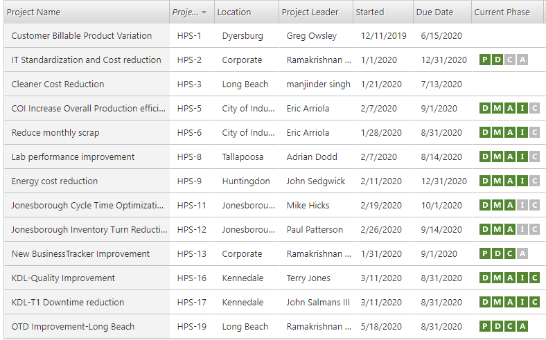 Os trainees de gerenciamento de projeto trabalham com as ferramentas e formulários do Companion by Minitab*, além das análises do Minitab Statistical Software. Depois, eles acompanham o progresso e o desempenho de todos os projetos em painéis em tempo real.